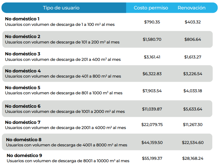 Registro en padrón nacional y emisión o renovación de permiso de descarga de aguas residuales para usuarios no domésticos.