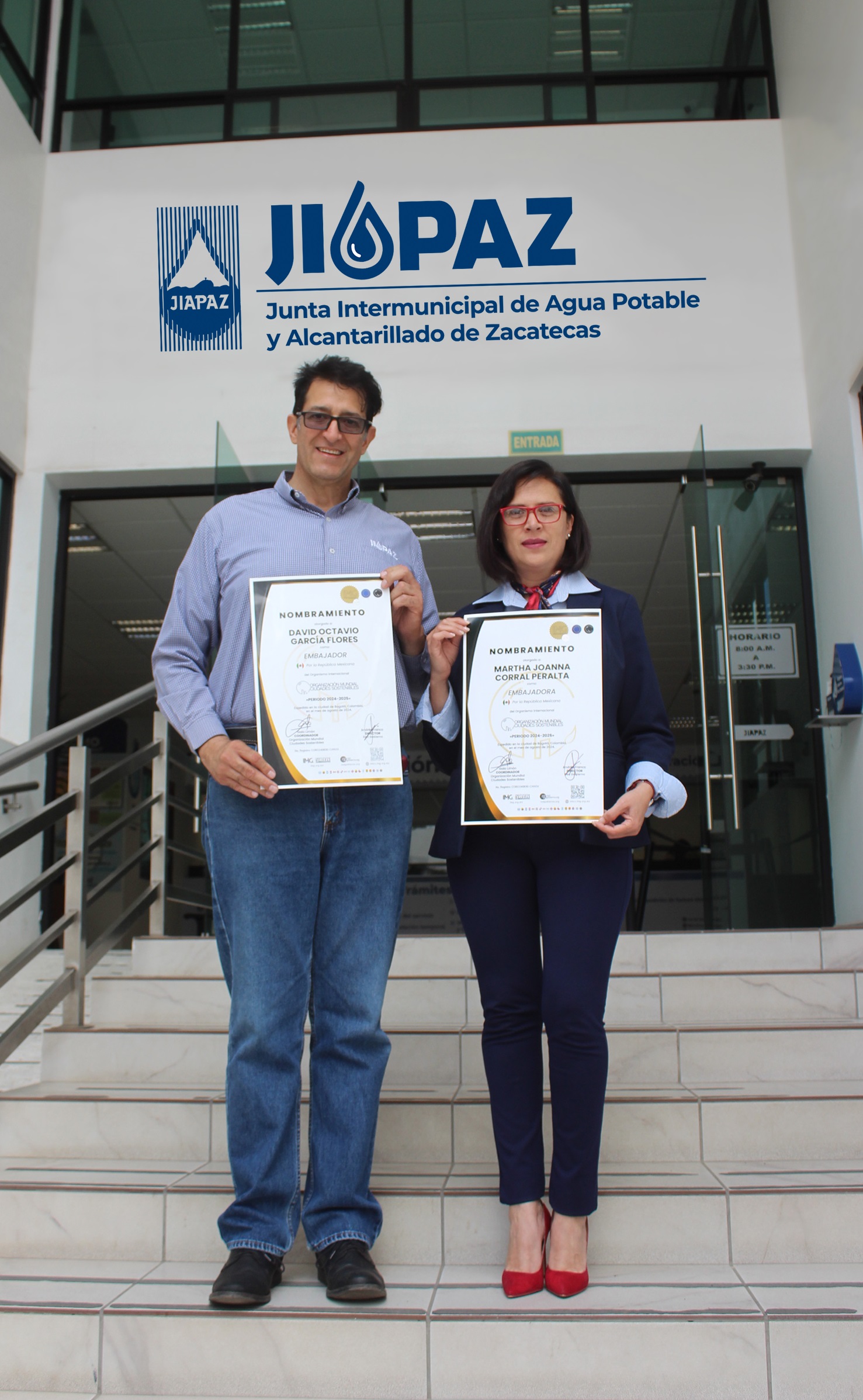 Zacatecas, Zac., 17 de septiembre de 2024.- Por la implementación de buenas prácticas administrativas orientadas a la eficiencia y cuidado del medio ambiente, la Organización Mundial de Ciudades Sostenibles entregó un reconocimiento a la Junta Intermunicipal de Agua Potable y Alcantarillado de Zacatecas (JIAPAZ).